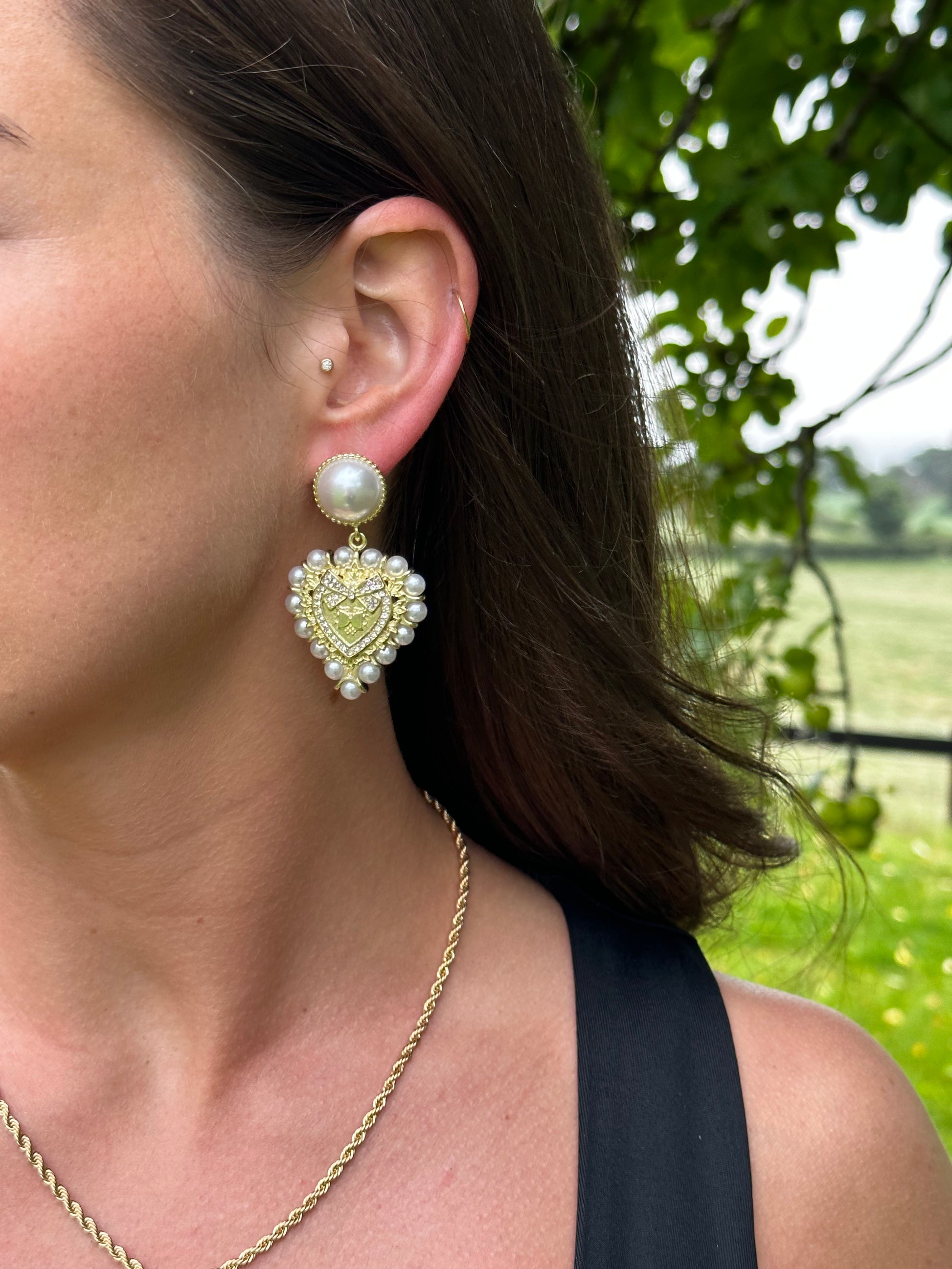 Pearl Drop heart earrings